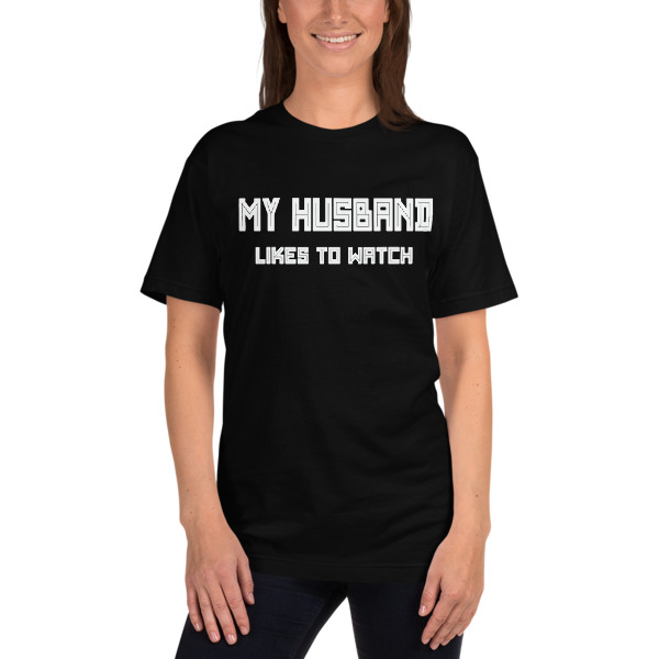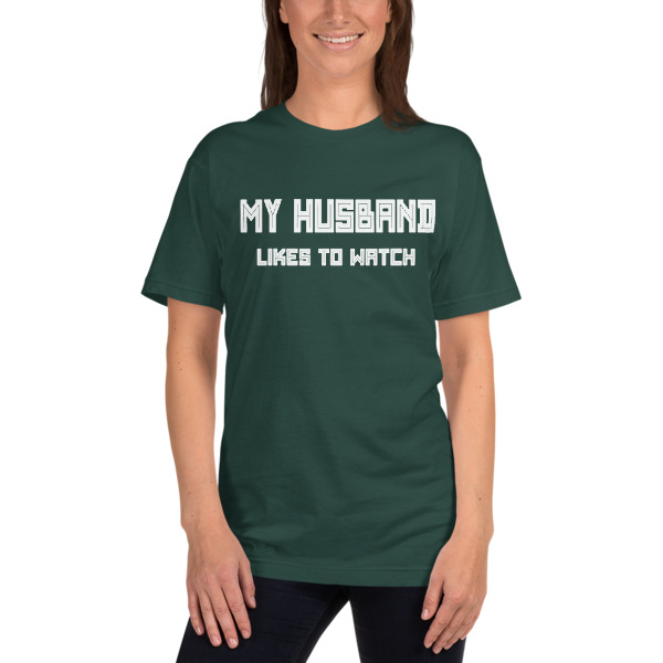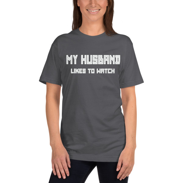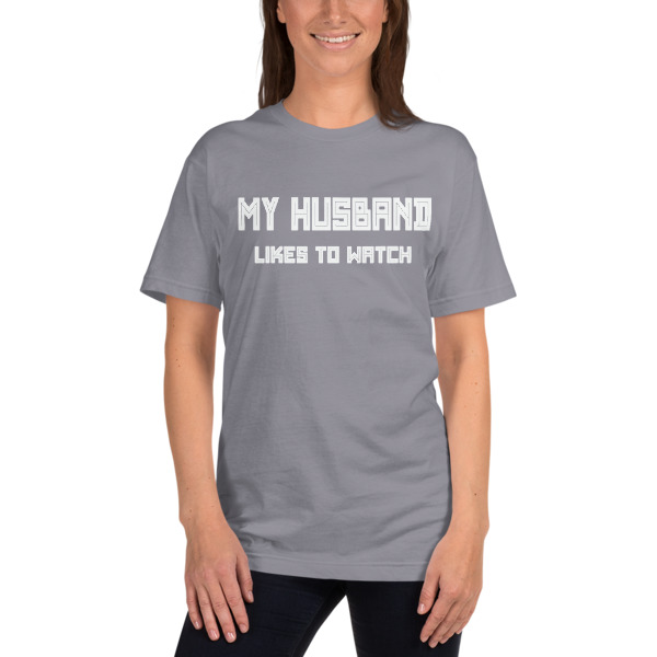 My Husband likes to watch American Apparel 2001 Unisex Fine Jersey Short Sleeve T-Shirt