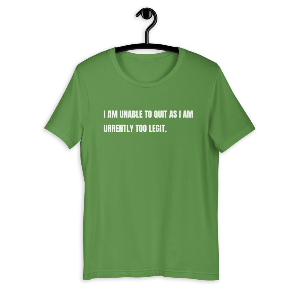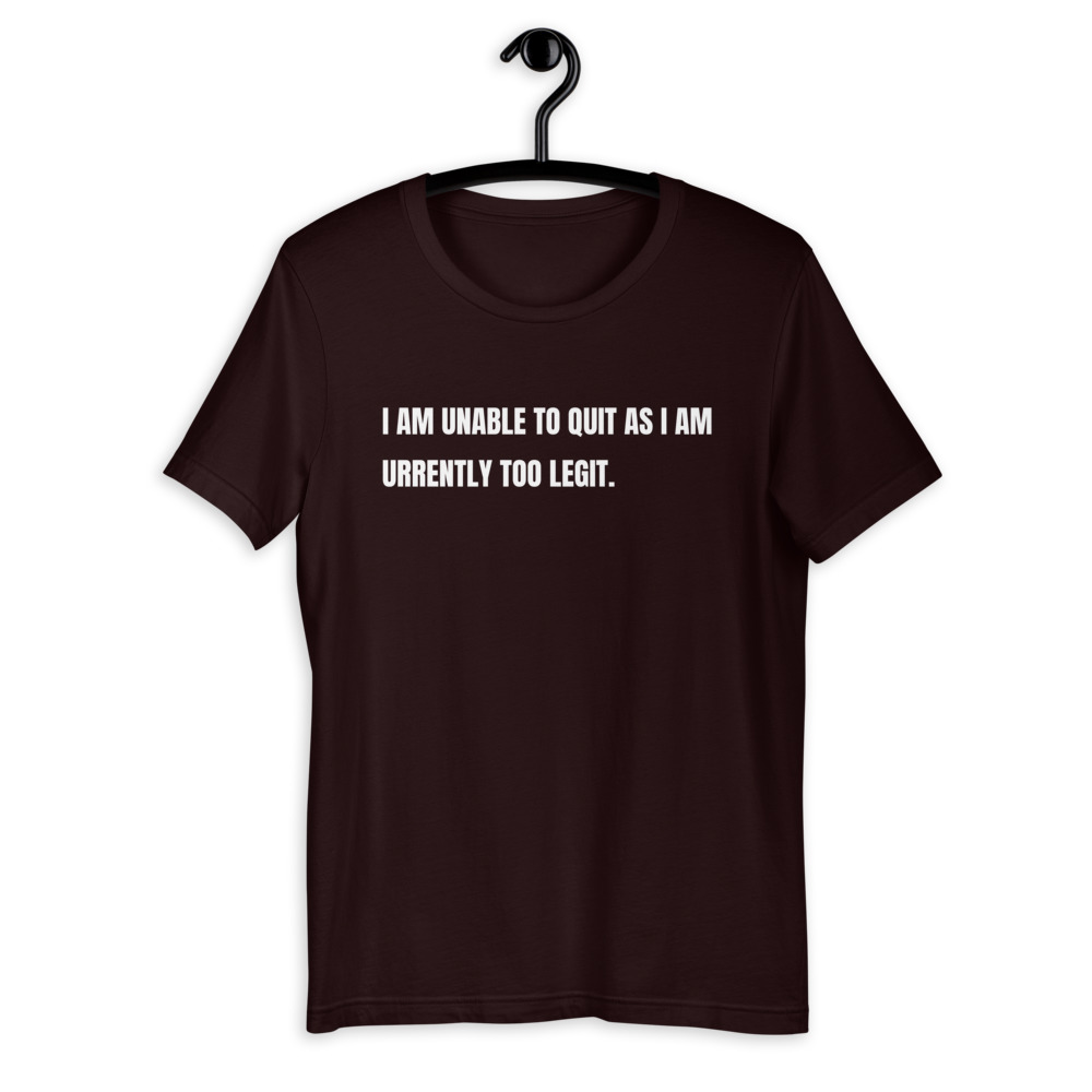 I AM UNABLE TO QUIT AS I AM URRENTLY TOO LEGIT Short-Sleeve Unisex T-Shirt