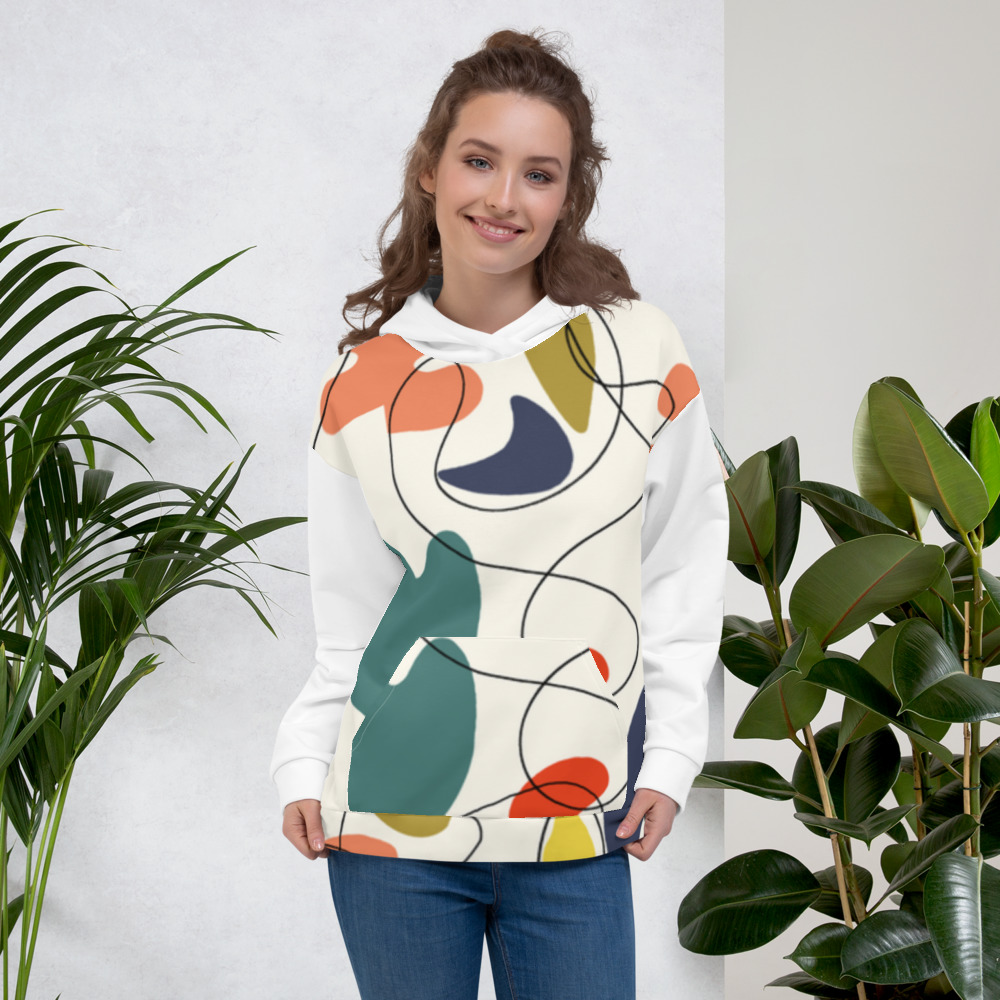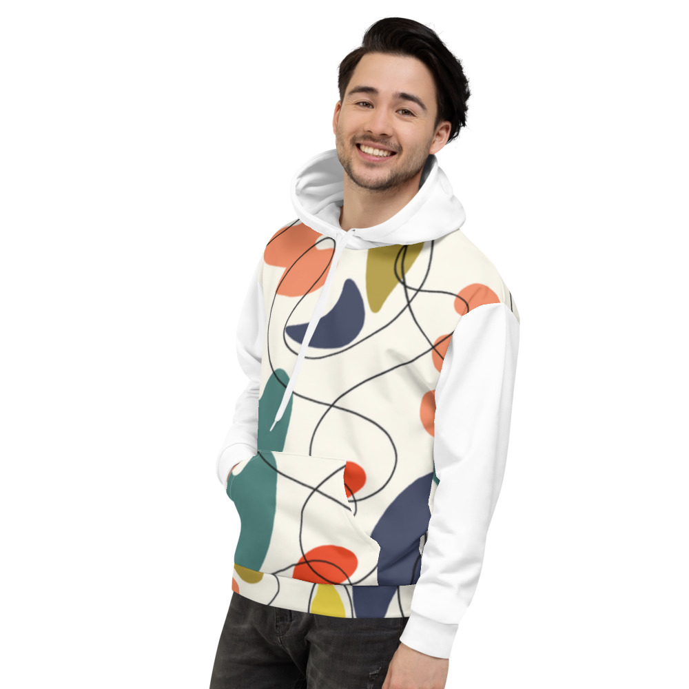 This comfy unisex hoodie has a soft outside with a vibrant print and an even softer brushed fleece inside. The hoodie has a relaxed fit, and it's perfect for wrapping yourself into on a chilly evening.